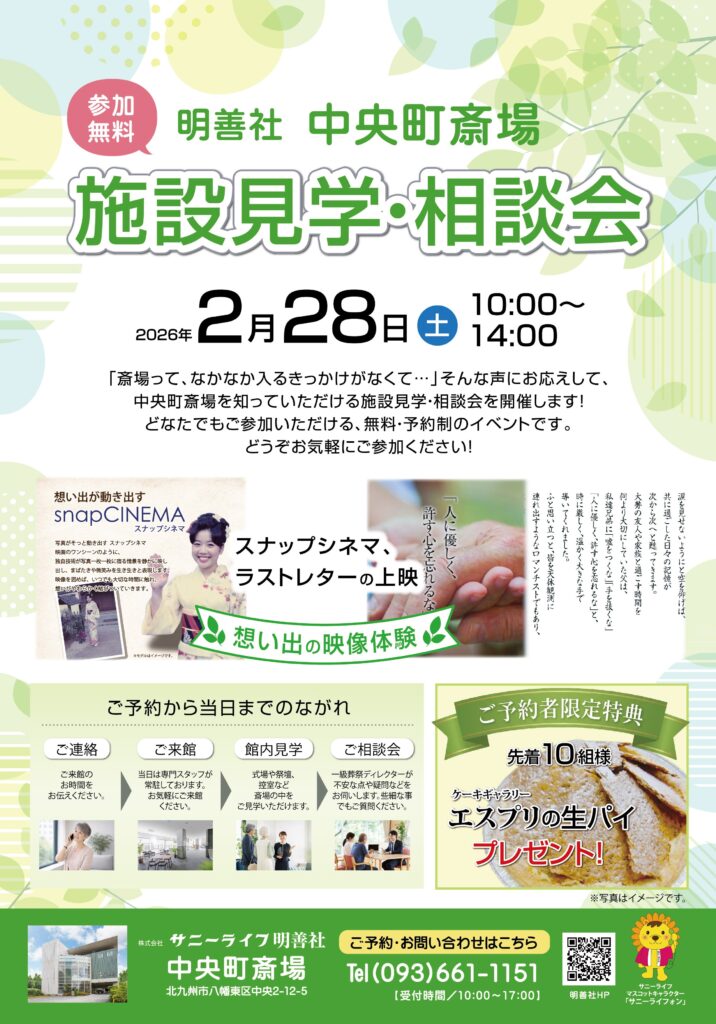 明善社 中央町斎場にて参加無料の「施設見学・相談会」を開催いたします!