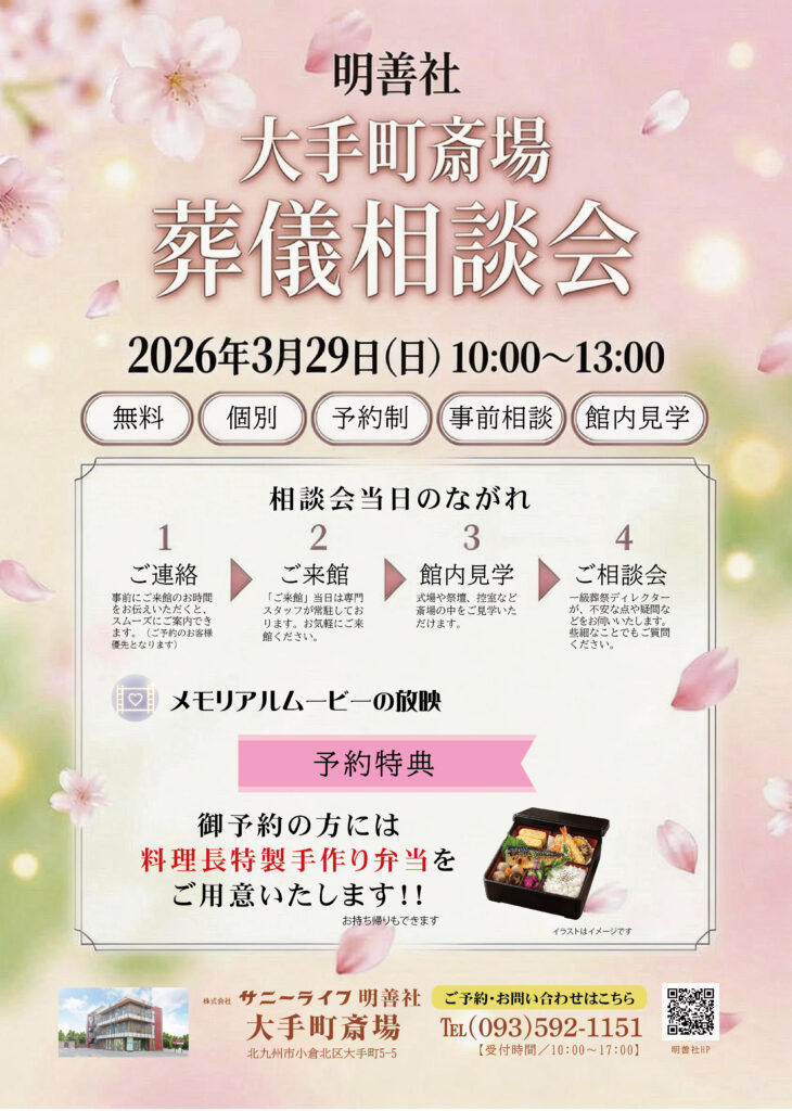 明善社 大手町斎場にて参加無料!予約制で「葬儀相談会」を開催いたします!