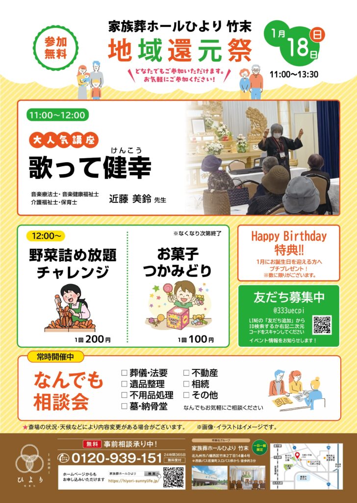家族葬ホールひより 竹末にて「地域還元祭」を開催いたします!