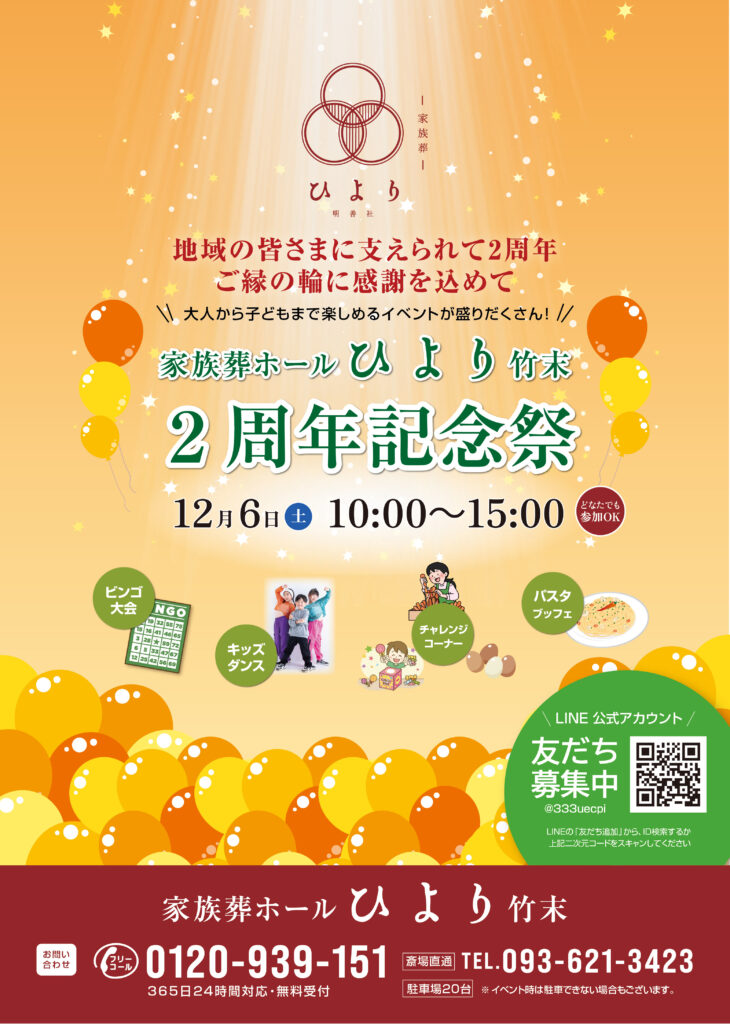 家族葬ホールひより 竹末にて「2周年記念祭」を開催いたします!